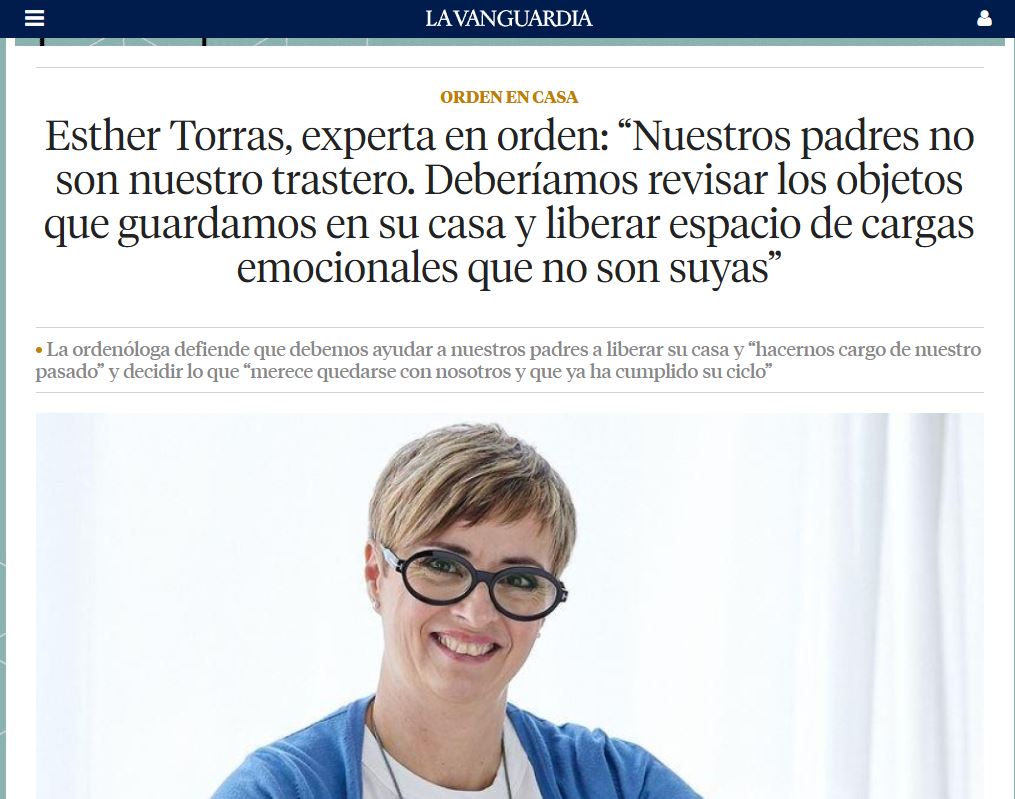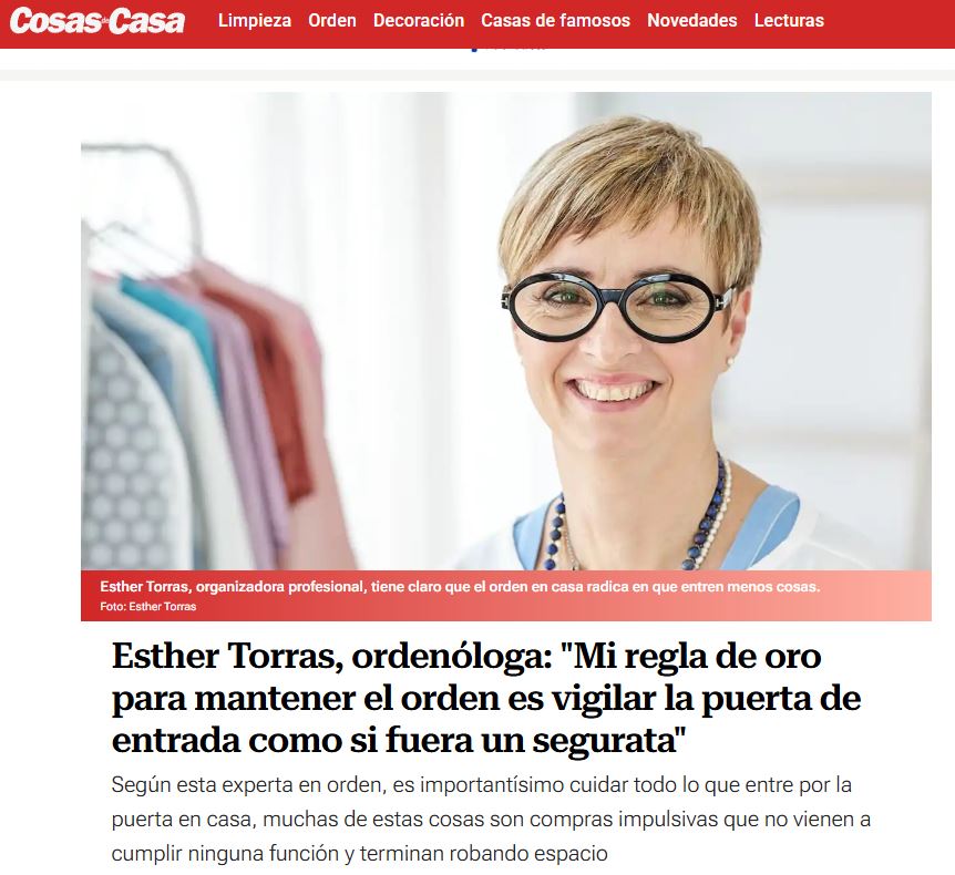 Esther Torras Esteban se dedica profesionalmente a ordenar. En esta entrevista con Almudena Cacho nos desvela los secretos de su trabajo y los beneficios que el orden supone para una adecuada calidad de vida...